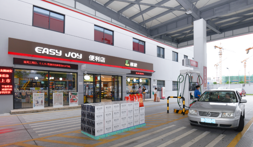 欧米のガソリンスタンドの85%で、キヨスク売店やコンビニが併設され、スタンド全体の利益の6割はコンビニからのものになっているという状況を見て、2006年、ガソリンスタンドを展開する中国石化は、ガソリンスタンドでのコンビニ展開を考えた。15億元の予算を使って改修を行い、ガソリンスタンドに休憩、軽食、買い物、自動車関連グッズの販売などのコンビニを設置する計画を立て、2008年から易捷の展開が始まった。