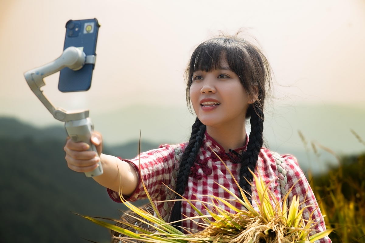 曽慶歓さんは、「湘妹心宝」という名前でライブコマースを行なっている。「今ではスマートフォンと自撮り棒が私の農具で、ライブコマースが私の農作業です」と言う。
