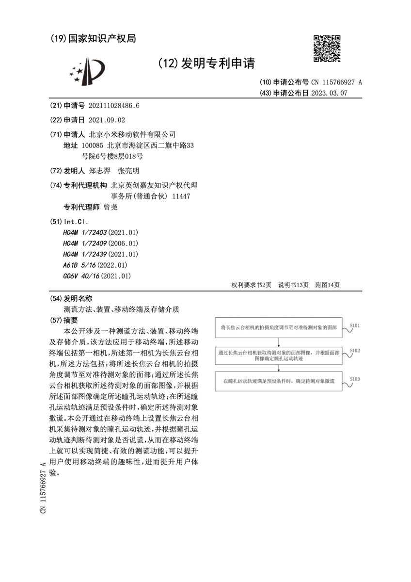 スマホメーカーの小米(シャオミ)が嘘発見器の特許を申請した。「嘘を測定する方法、装置、モバイルデバイス、ストレージ」(申請番号CN115766927A)というもので、スマートフォンのカメラを利用して、対象の人が嘘をついているかどうかを判定するものだと找靚機玩数碼が報じた。