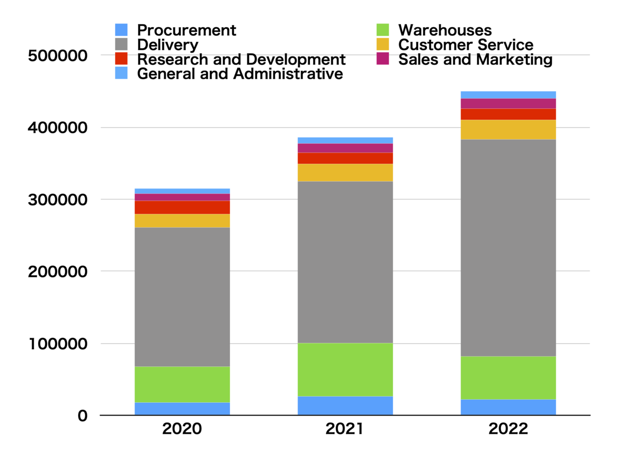 人数だけを見ると増えていて、今回もリストラなどなかったように見えます。しかし、それは、Delivery(配達)の人数が22万人から30万人に増えているためです。京東は、自社仕入れ、自社販売、自社配達のECですから、従業員数の半分以上が配達スタッフです。当日配達のエリアを増やすために大幅増員を行ったため、全体の従業員数も大きく増えています。