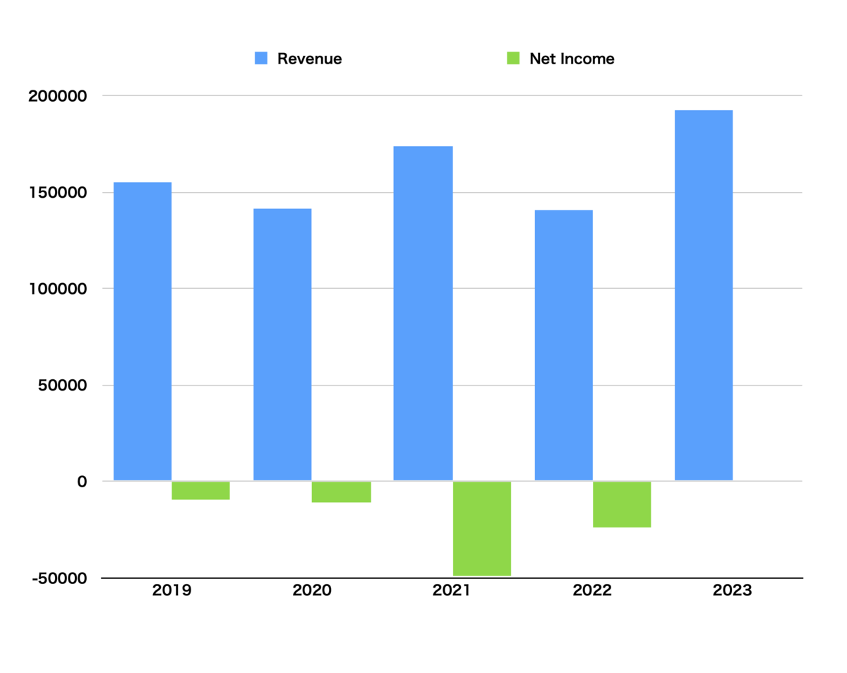 2020年と2022年には、コロナの感染拡大もあり、営業収入は頭打ちになっています。しかも、稼ぐ力=EBITDAも非常に小さな数字です。ライドシェアが非常に厳しいビジネスであることがわかります。